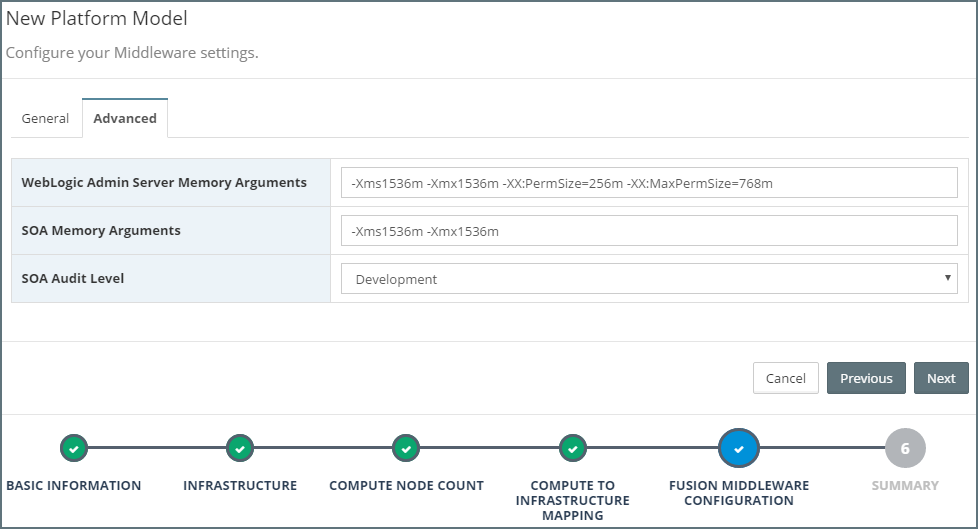Once we have specified the General and Advanced Platform Model configurations, click Next.