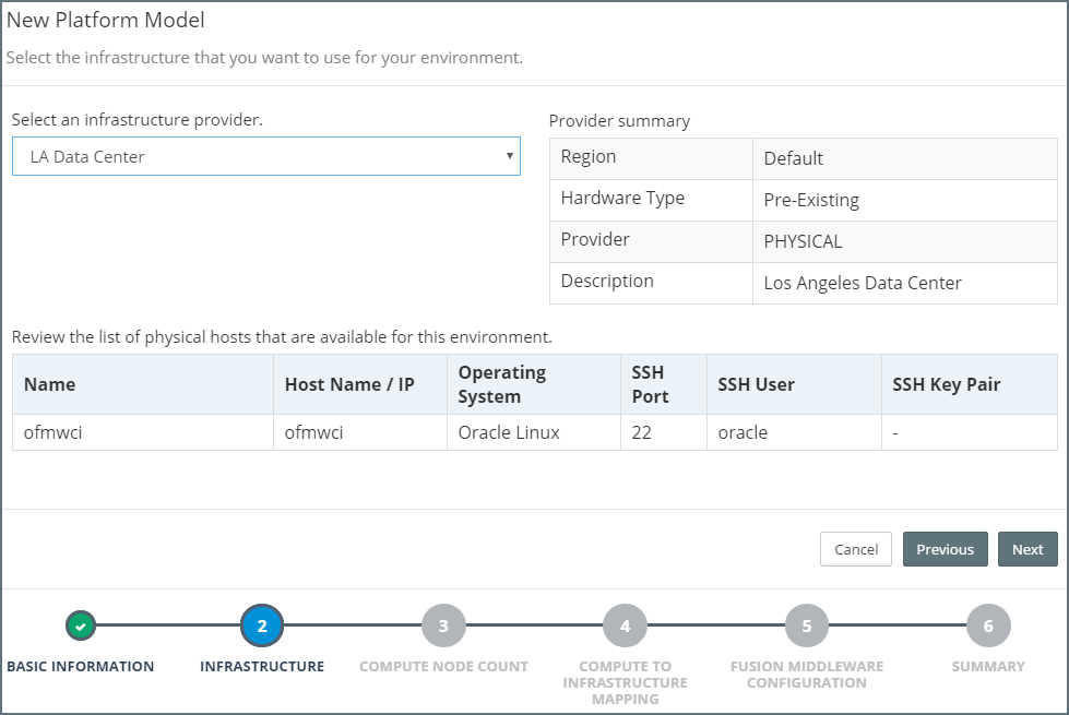 Next, we need to specify the Infrastructure Provider for our Platform Model. From the corresponding drop-down, select a Pre-Existing Infrastructure Provider. MyST will list all the target hosts within the Pre-Existing Infrastructure provider for the Platform Model Environment Type.
