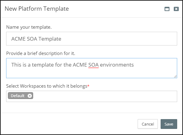 In the New Platform Template dialog specify the Name and a Description for the new Platform Template and click Save to complete the process.