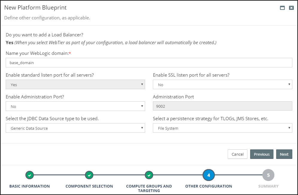 - WebLogic Domain Name - Specify an appropriate WebLogic Domain Name.