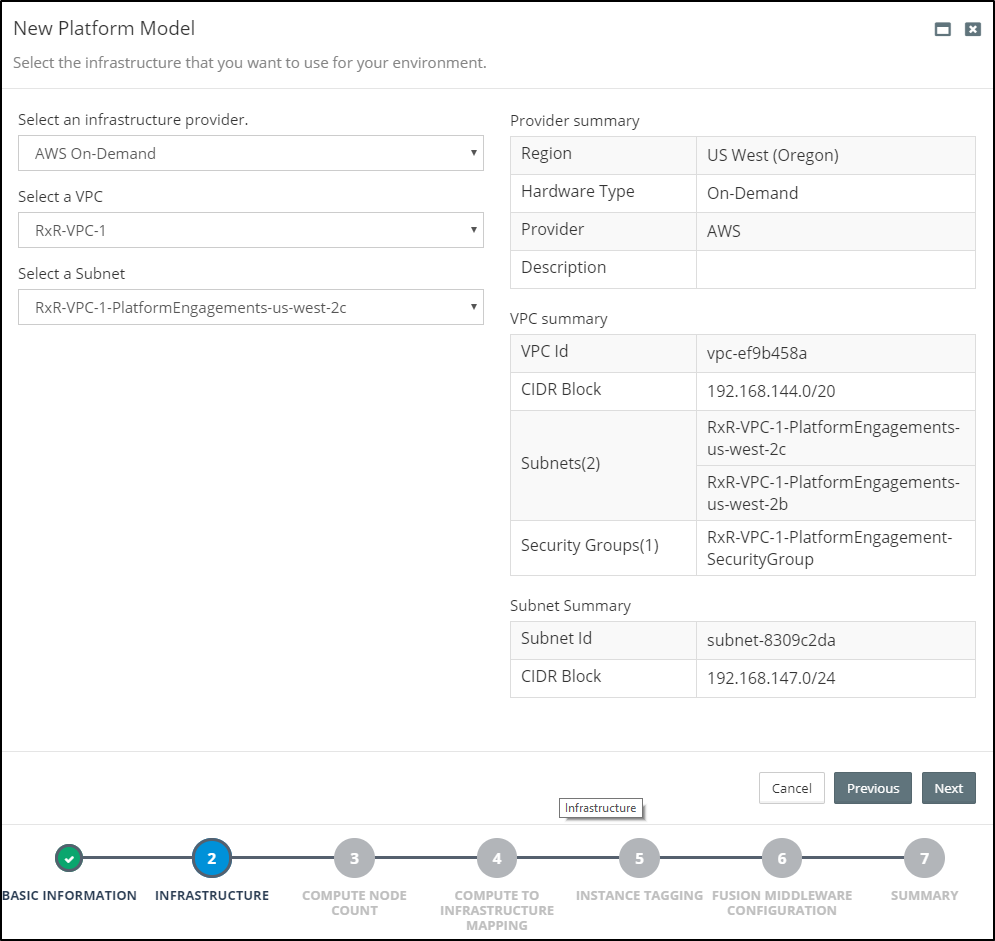 Note: The available VPCs and Subnets are those configured as part of setting up the AWS On-Demand Infrastructure. See Configuring AWS On-Demand Infrastructure for further details.