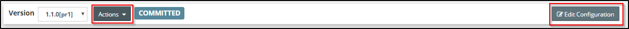 | Edit Configuration | Blueprint / Model | Draft / Committed | Switches the user interface into edit mode, exposing all controls for making changes to configuration. In case, the current revision is committed, this will auto-increment the revision number in edit mode. |