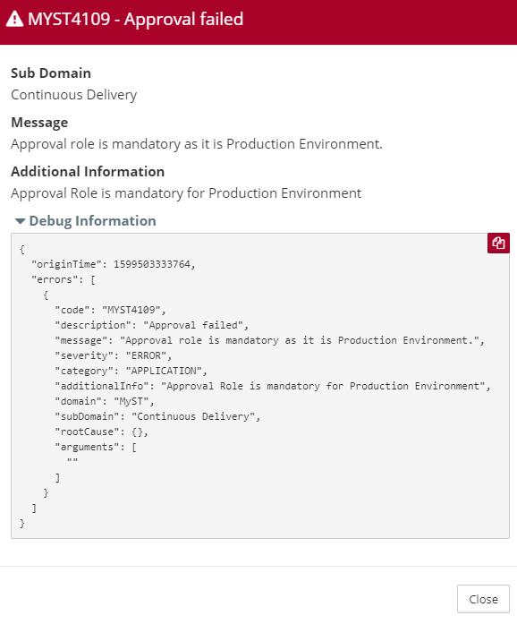 Then an error is returned as Cannot approve release in Production environment because you previously deployed to non-production environment
