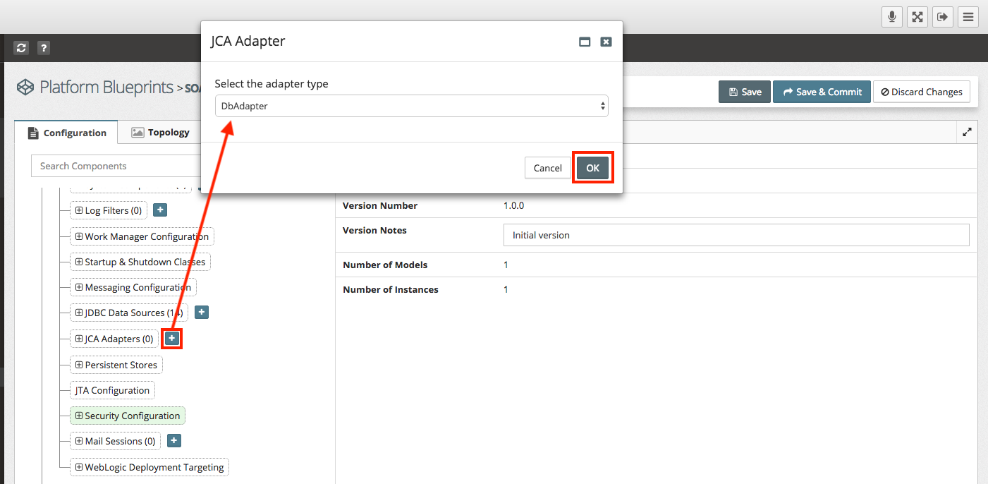 Click on the + icon next to JCA Adapters (outlined in red). This will then prompt for adapter type.