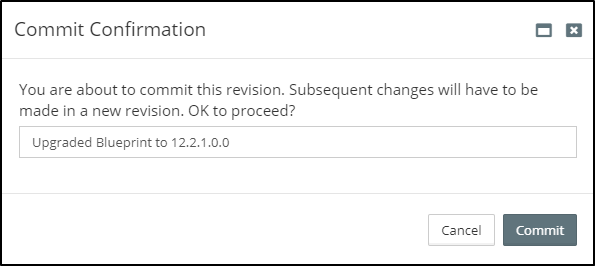Once the upgraded Platform Blueprint has been reviewed, click on Save & Commit. When prompted, enter a description for the change.