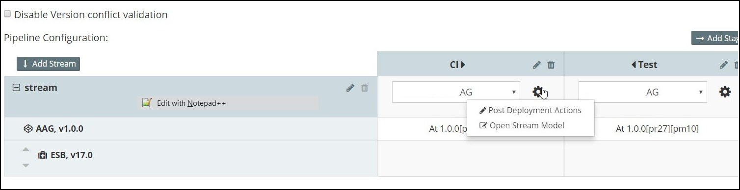 For each Stream / Stage combination, we will see a drop down in the Release Pipeline (as outlined in red below).