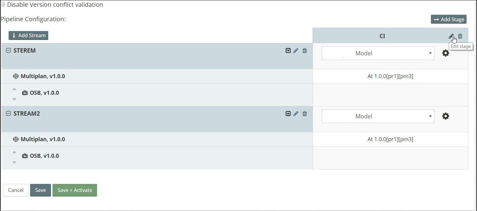 For each stream, we need to define its target Platform Blueprint and Version. Once defined Myst will only make available for deployment Platform Models / Instances that are based on the stream's Platform Blueprint and Version.