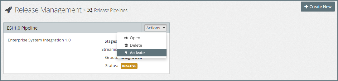 To activate a Release Pipeline Template, from the side menu navigate toRelease Management > Pipelines. This will display a list of existing Release Pipelines.