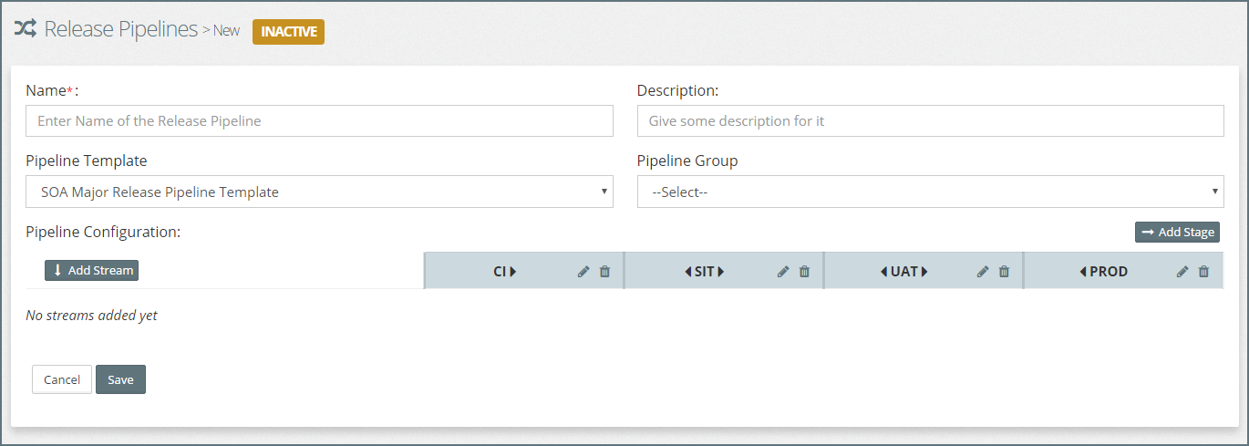 • Pipeline Group - Select the Release Pipeline Group to which the pipeline belongs.