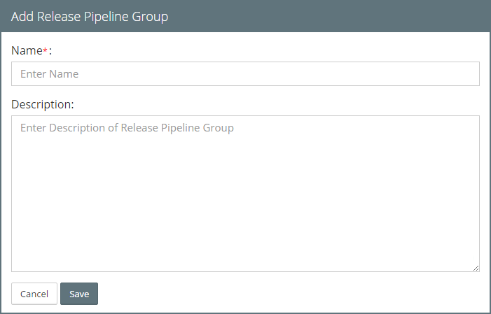 Click + Create New. This will open the Release Pipeline Group dialog. Specify the following values: