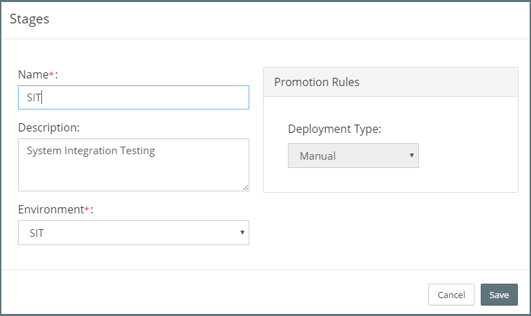- Automatic - Instructs Myst to automatically promote changes to this stage.