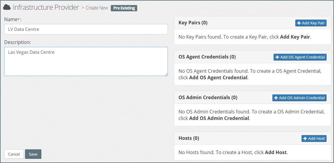 Click Add to save the new OS Agent Credential. Myst will return us to the Pre-Existing Infrastructure editor, click Save to confirm our changes.