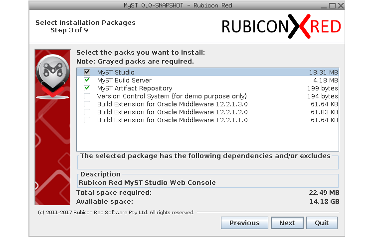 In the next step, we can choose which packs we wish to install. At a minimum Myst Studio will be selected.