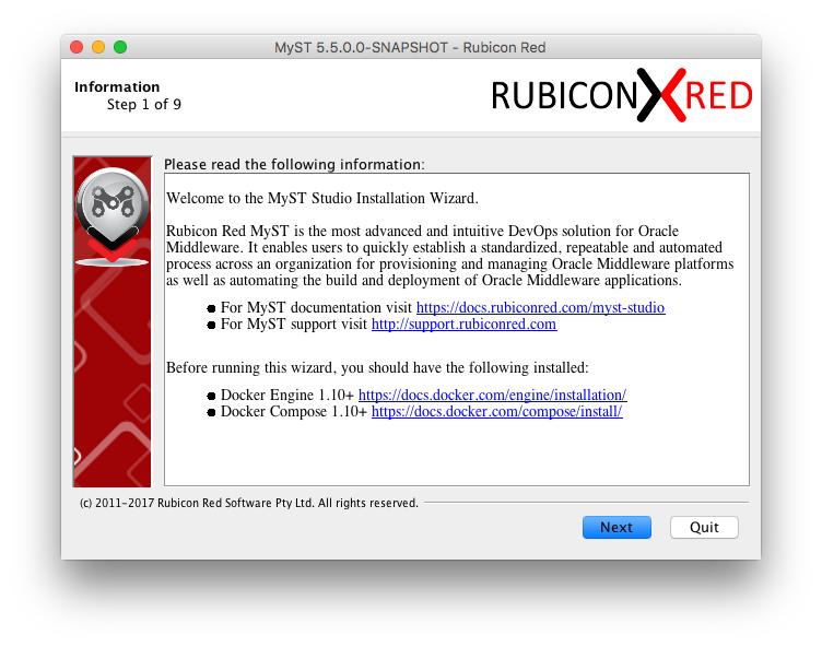 • The Myst license tar.gz file must be available. This is provided when you sign up to try Myst Studio.