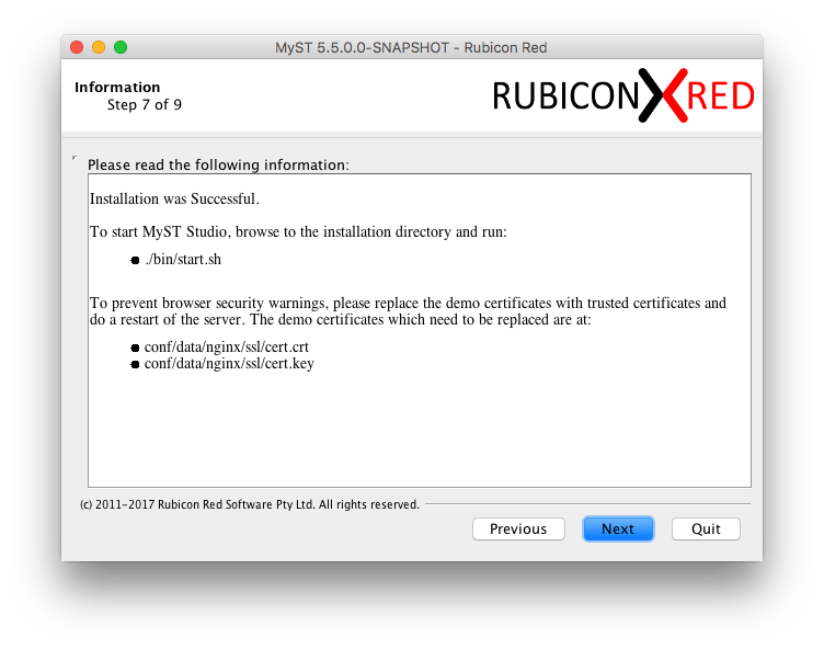 After the successful installation navigate to the Myst Studio home (in our example, /opt/myst-studio) and execute the following: