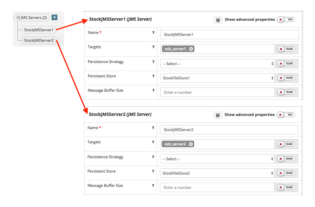 Persistent Store - We will need to define a dedicated persistence store for each JMS Server. See Configuring Persistent Stores for further details.