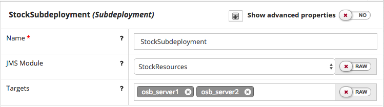 - Sub Deployment - We will typically define one sub deployment per JMS Module and target it to the set of JMS servers running on the WebLogic Server cluster targeted by the JMS Module