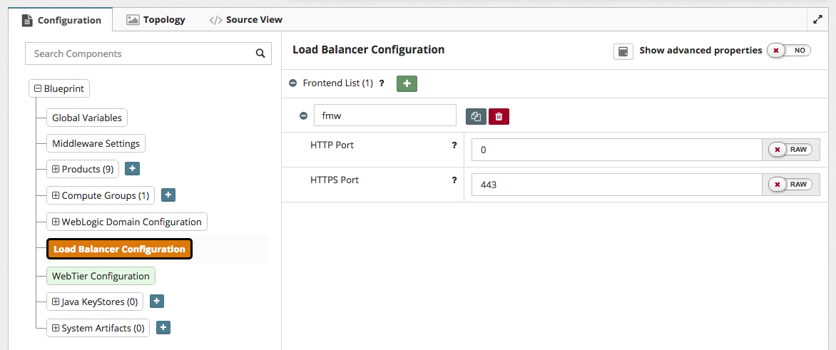 Setting up a load balancer frontend requires settings across the Platform Blueprint and Model as shown below.