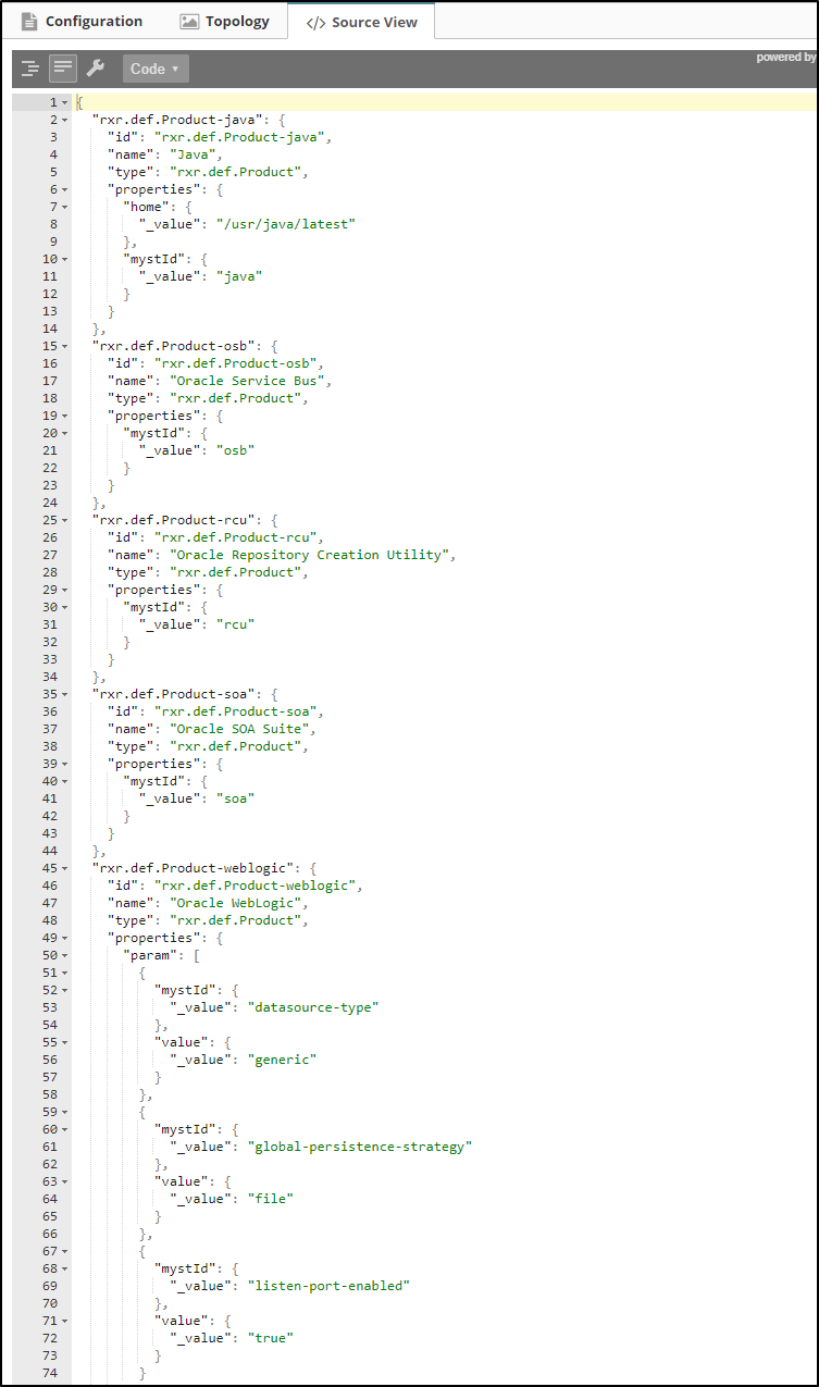 The Source View presents the raw JSON data which backs the platform configuration. This is a read-only view and is intended to be used in conjunction with the REST APIs for programmatic configuration.
