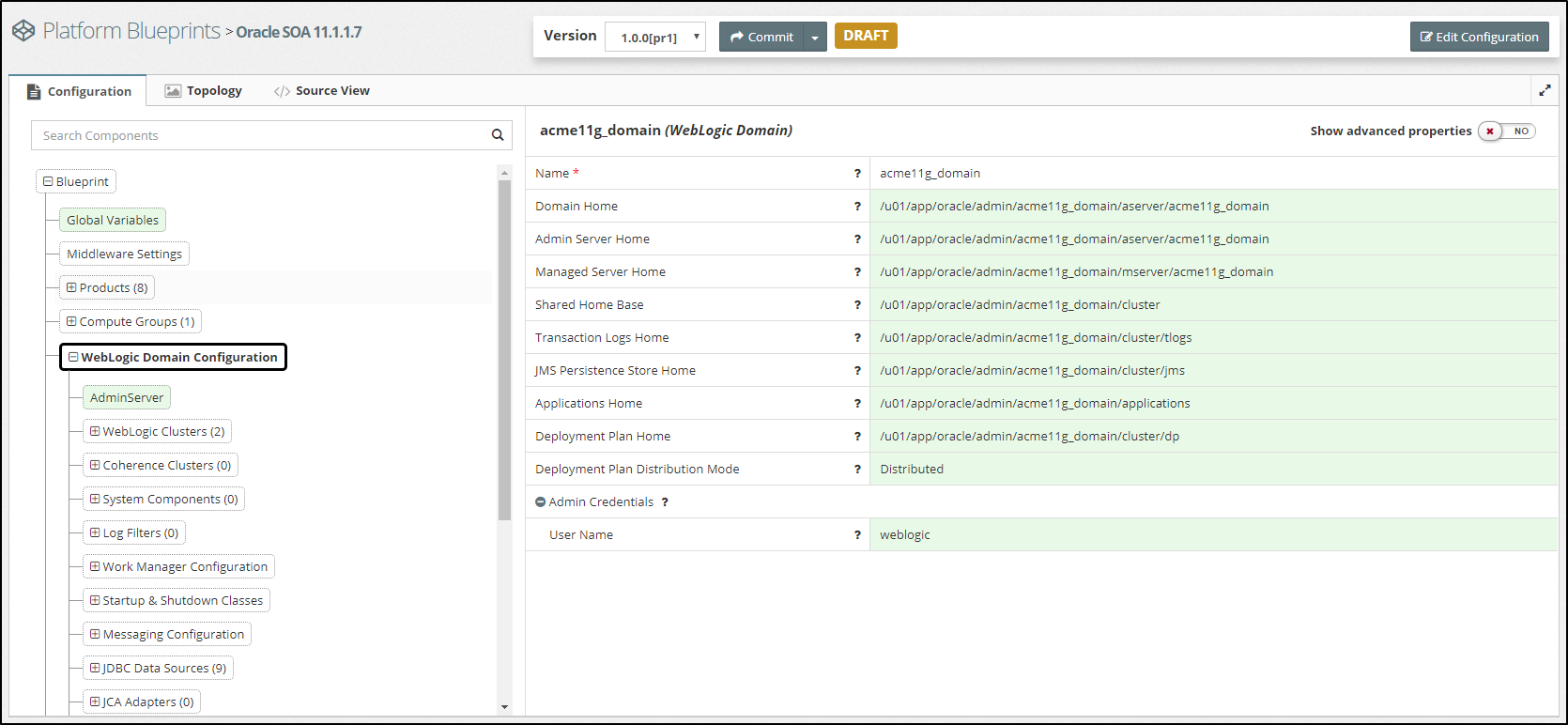 We can now use this Platform Blueprint to provision an equivalent WebLogic Domain either on-premise or in the cloud.