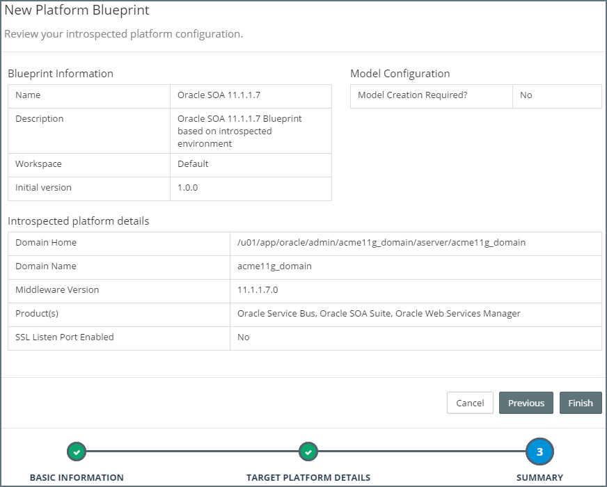 Myst allows us to create a Platform Blueprint based on an existing WebLogic Domain, we simply point Myst at an existing WebLogic Domain, Myst will introspect the platform instance and create a corresponding Platform Blueprint. Myst also provides the option to create a corresponding Platform Model.