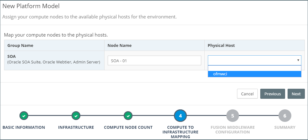 Myst will list out each node required by the Platform Model. Against each node there will be a drop down box, which will list the target hosts available to map the node. For each node, select the target host. Only hosts available from the specified environment will be available for selection.