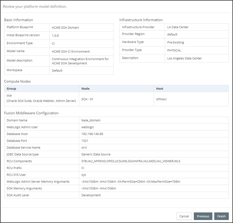 • Domain Name - This is the WebLogic Domain name, it will default to the value specified in the Platform Blueprint, but can be overridden in the Platform Model.