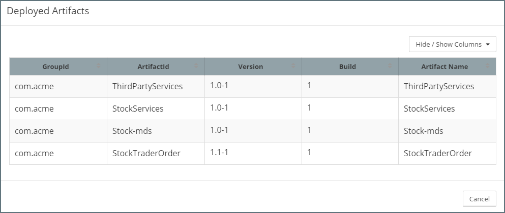 Viewing the List of Deployed Artifacts