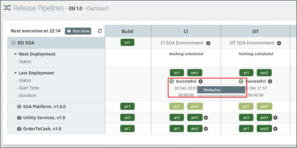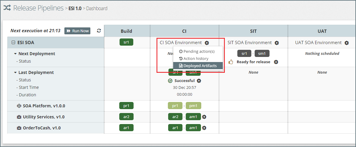 For example, in the above screenshot, we can see that the following components (outlined in red) are available for deployment into the CI stage: