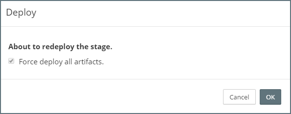 Here we have the option of selecting Force deploy all artifacts. If we select this option, we can force Myst to re-deploy all artifacts contained across Application Blueprints.