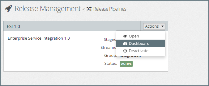 Click on the Actions drop-down in the top right-hand corner of the pipeline whose dashboard we wish to view and select Dashboard.